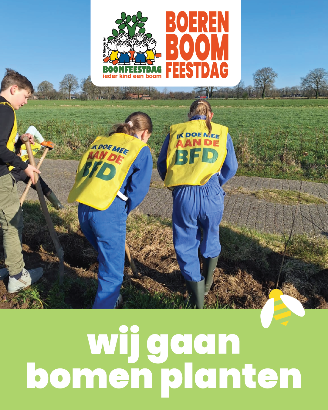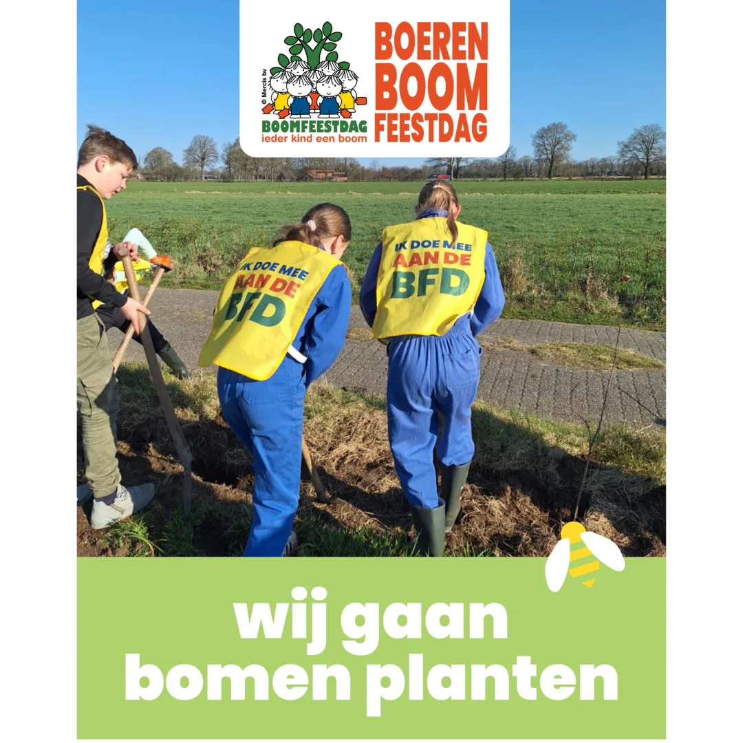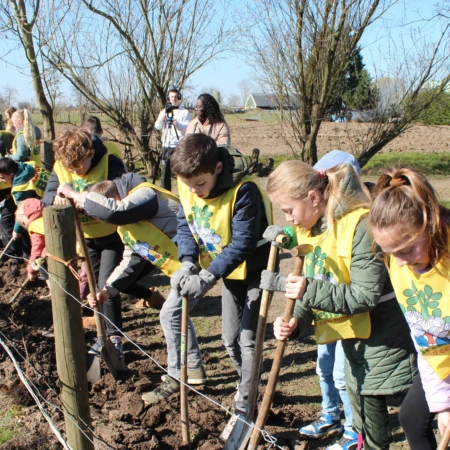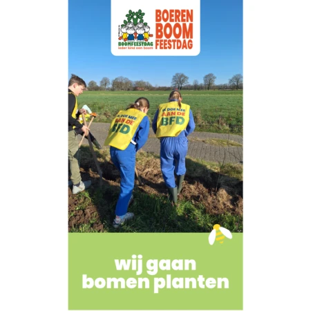 Ook in (naam gemeente) planten kinderen (van de @ schoolnaam) op (datum) bomen tijdens de Boerenboomfeestdag.